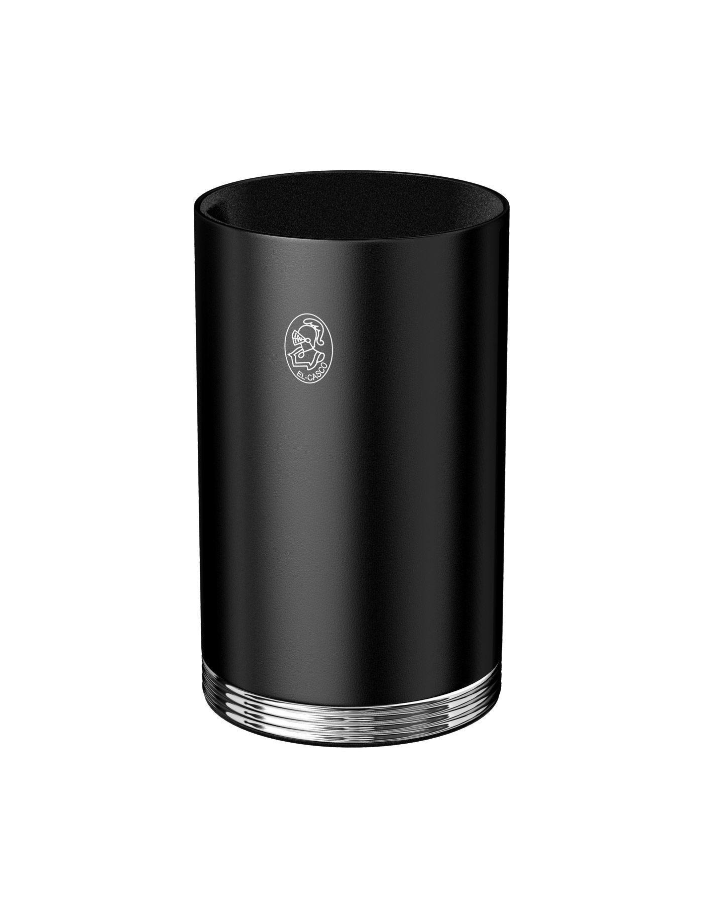 Siyah ve parlak krom kaplamalı ofis kalemlik.
