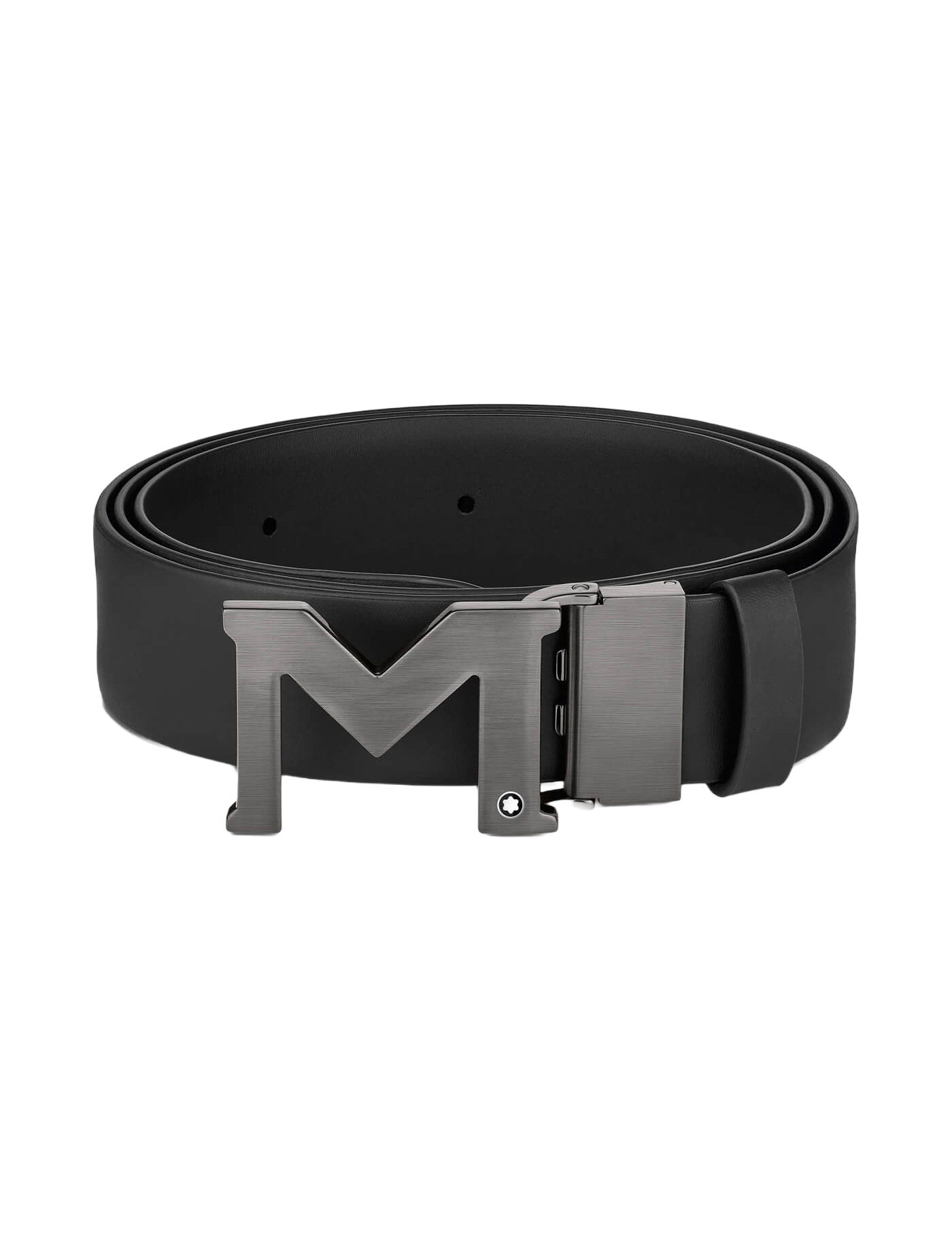 Montblanc At Nalı Toka Baskılı Siyah/Düz Siyah 35 mm Çift Yönlü Deri Kemer 198634